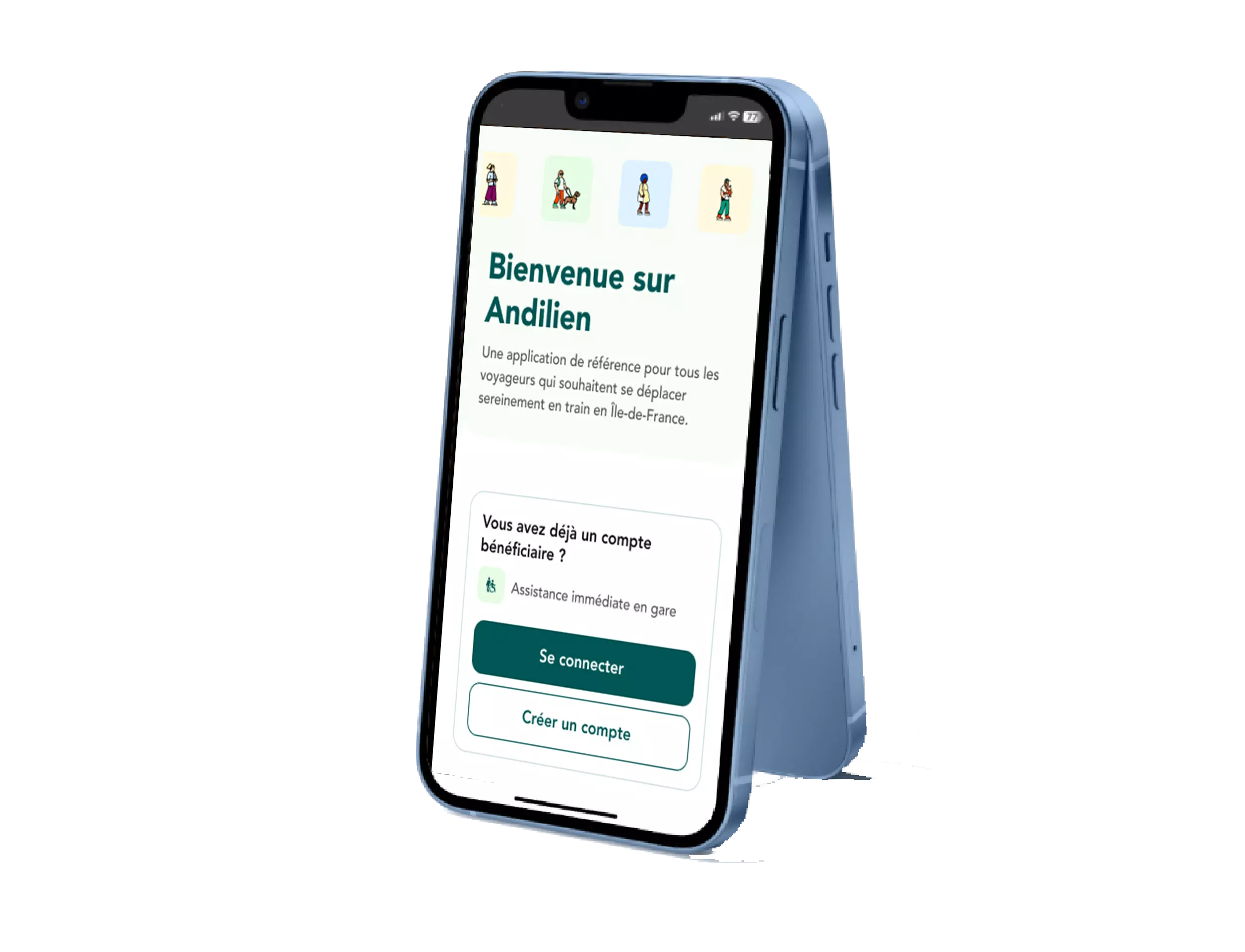 Andilien, un'applicazione sviluppata da Transilien SNCF Voyageurs per Île-de-France Mobilités, facilita gli spostamenti dei viaggiatori dell'Île-de-France con esigenze particolari: donne incinte, anziani o persone con disabilità, ecc.